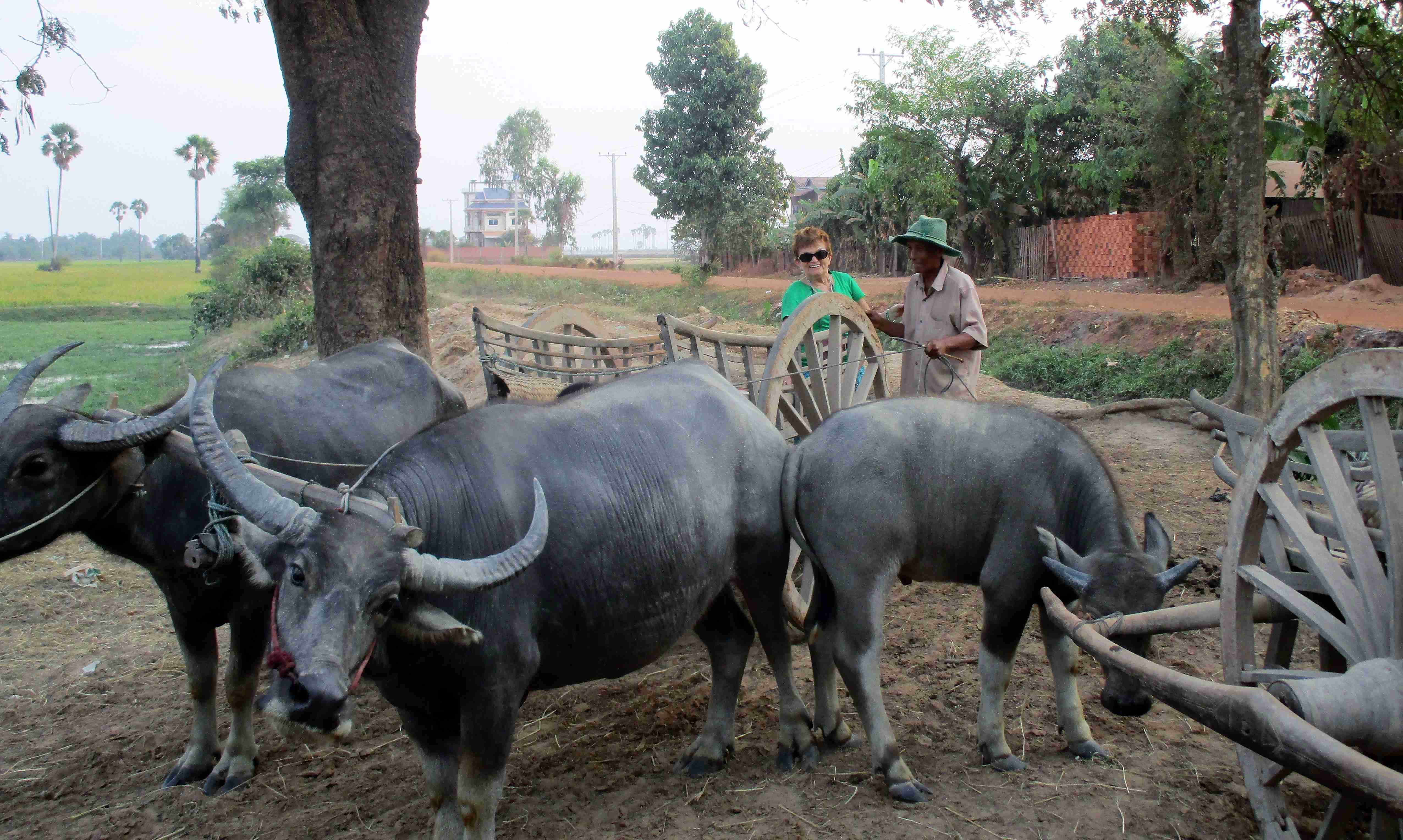 Nancy went on a buffalo cart ride.